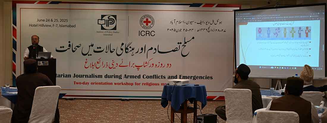 یہ نکات ۲۴ اور ۲۵ جون ۲۰۲۵ کو منعقدہ دو روزہ علاقائی ورکشاپ کے دوران اجاگر کیے گئے، جو مذہبی جرائد کے مدیران اور ڈیجیٹل مواد تخلیق کرنے والوں کے لیے منعقد کی گئی تھی۔ یہ ورکشاپ انسٹیٹیوٹ آف پالیسی اسٹڈیز) آئی پی ایس(، اسلام آباد، اور انٹرنیشنل کمیٹی آف دی ریڈ کراس) آئی سی آر سی (کے اشتراک سے منعقد کی گئی۔ اس کا مقصد شرکاء کو مسلح تنازعات اور انسانی ہمدردی کے بحرانوں کے تناظر میں مؤثر رپورٹنگ اور تجزیے کے لیے ضروری معلومات اور مہارتیں فراہم کرنا تھا۔